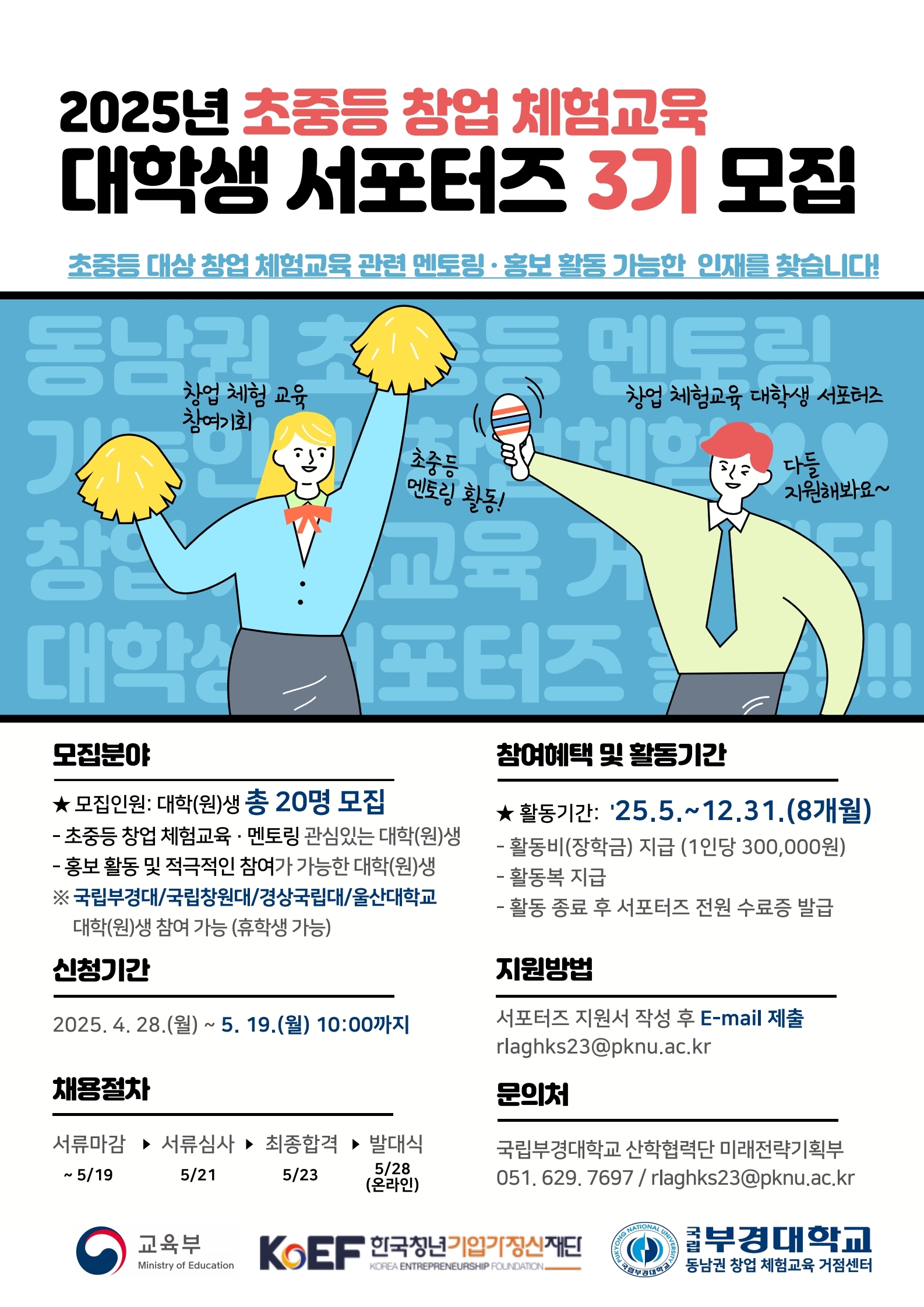 | [2025년 초중등 창업 체험교육 대학생 서포터즈 3기 모집] | |||||
