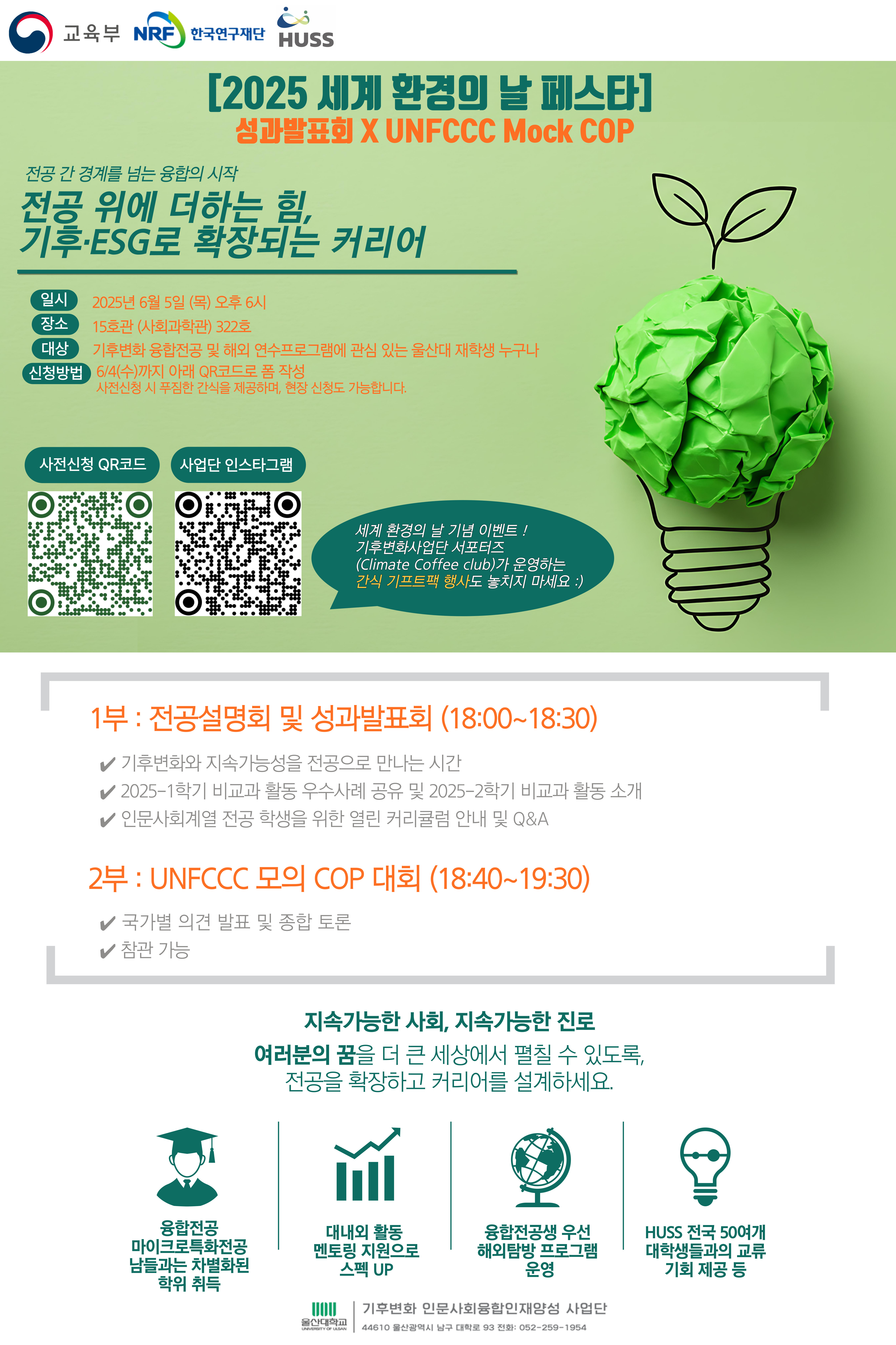 | [2025 세계 환경의날 페스타] 전공설명-성과공유회 X UNFCCC 모의COP 안내 | |||||